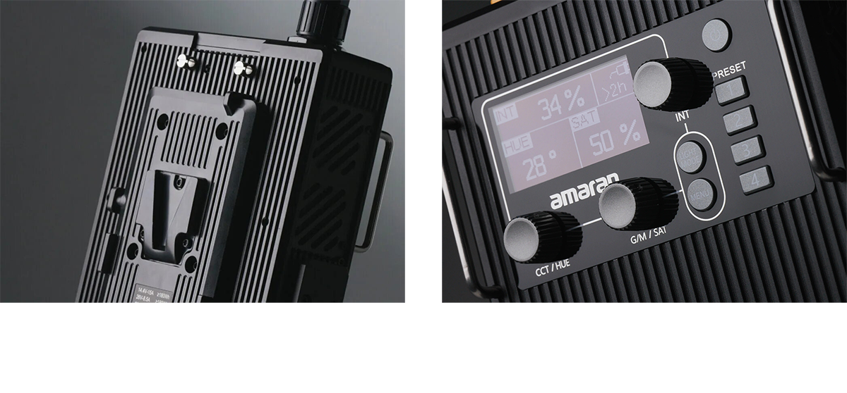 Удобное управлениеБлок управления и питания вынесен отдельно и имеет адаптер V-mount аккумулятора для автономной работы. Его можно закрепить отдельно и выполнять настройку рабочих параметров даже если осветитель закреплен высоко. Предусмотрена возможность управления дистанционно, на расстоянии до 80м через смартфон, при помощи системы Sidus Link |