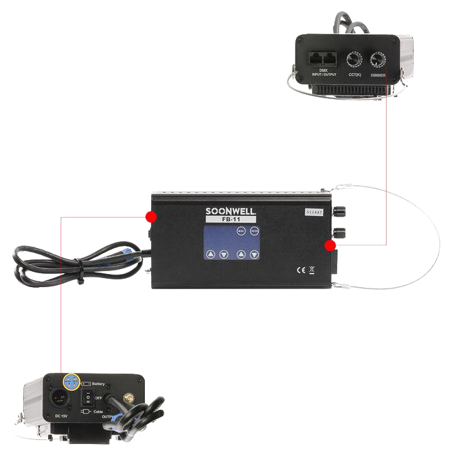 ![]() | Сенсорный дисплейБлок управления имеет яркий LED экран с сенсорным управлениям, что позволяет управлять и настраивать работу прибора, даже в полной темноте, а также следить за состоянием аккумулятора. Для автономной работы предусмотрена возможность установки аккумулятора типа V-mount |