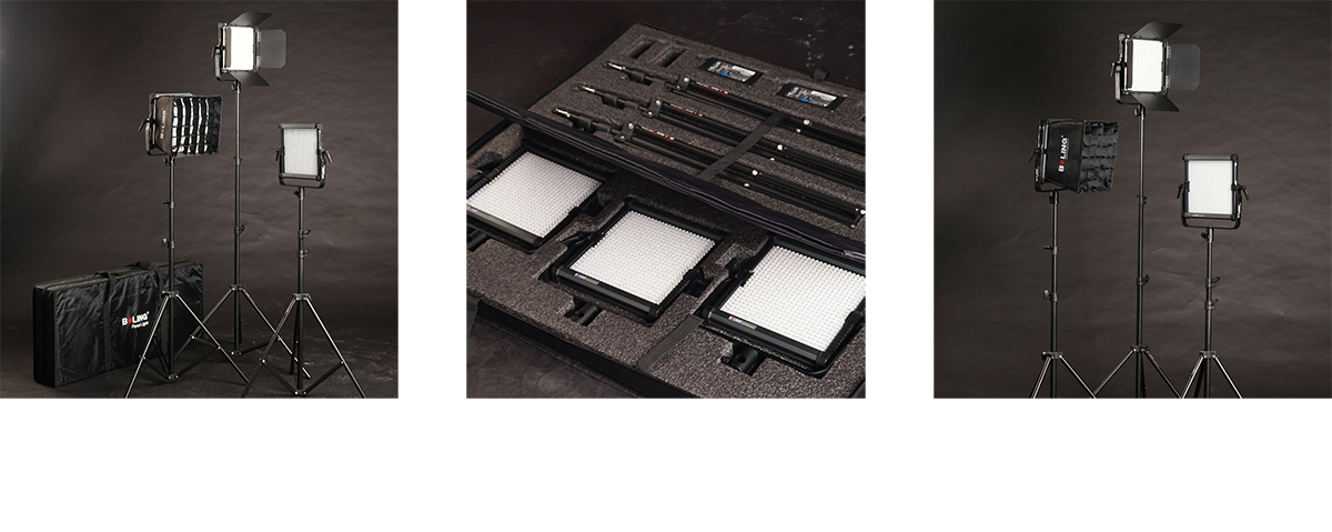 Расширенный комплект из трех осветителей, стоек, сетевых адаптеров и аккумуляторов, что позволяет полностью оборудовать студию и приступать к работе. Все элементы помещаются в специальную сумку, что делает транспортировку и хранение очень удобным |