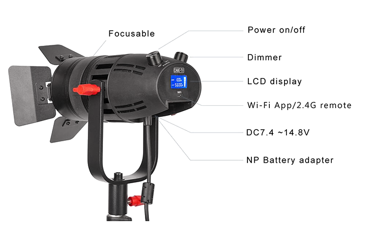 | При помощи кашетирующих шторок вы можете управлять объёмом светового потока прямо во время съёмочного процесса. Прожектор оснащен линзой Френеля, что позволяет фокусировать и регулировать размер светового пятна, добиться уменьшения сферической аберрации, а также сократить размеры и вес оборудования | ![]() |