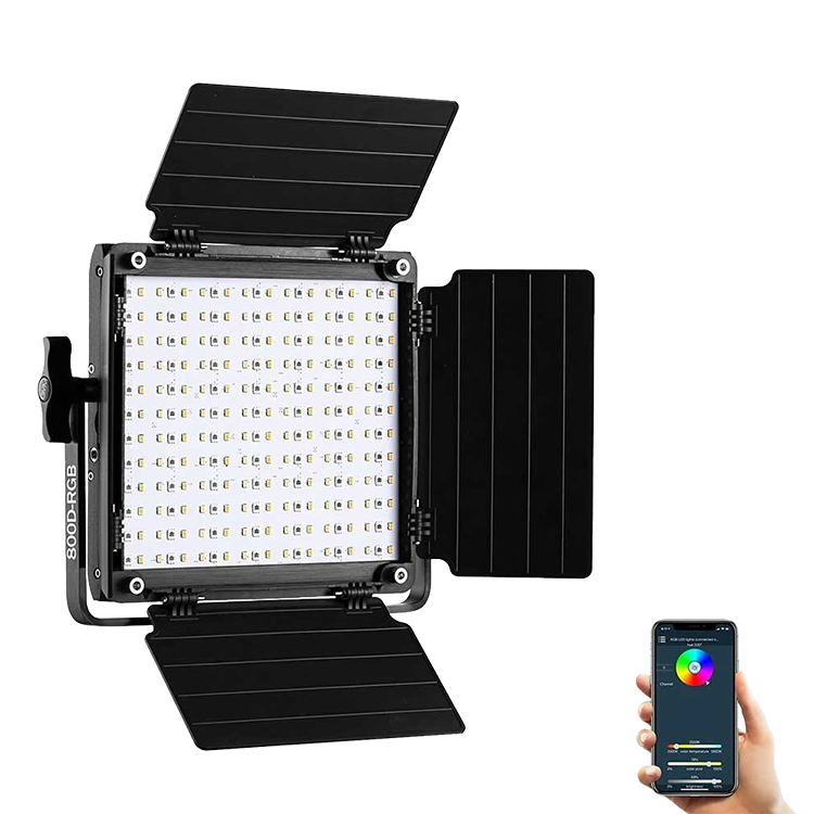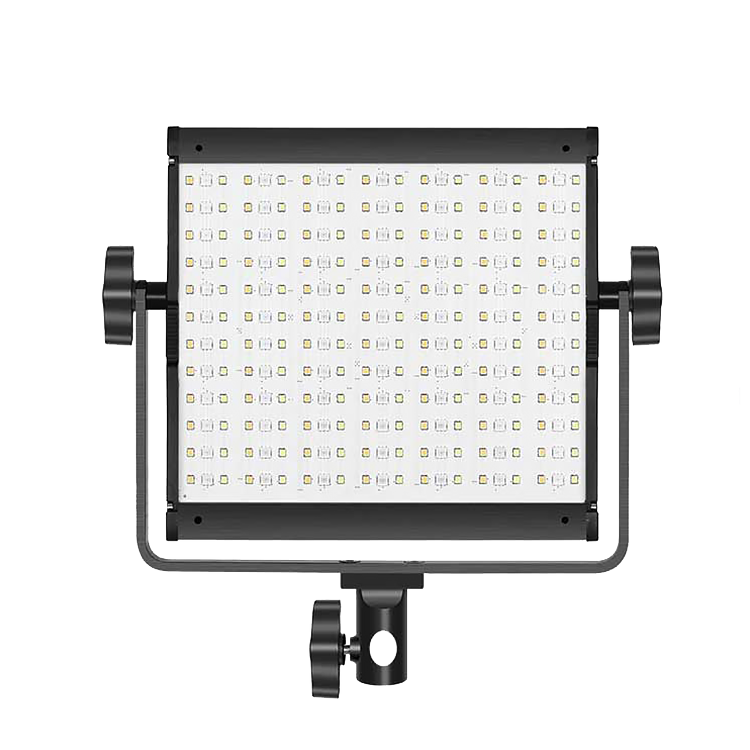 Осветительное устройство имеет регулируемую цветовую температуру от 3200 до 5600К. Лампа имеет 168 светодиодов и 84 RGB светодиодов. В комплекте имеются шторки для регулировки луча. Вы сможете установить их под требуемым углом, чтобы получить необходимую площадь освещения