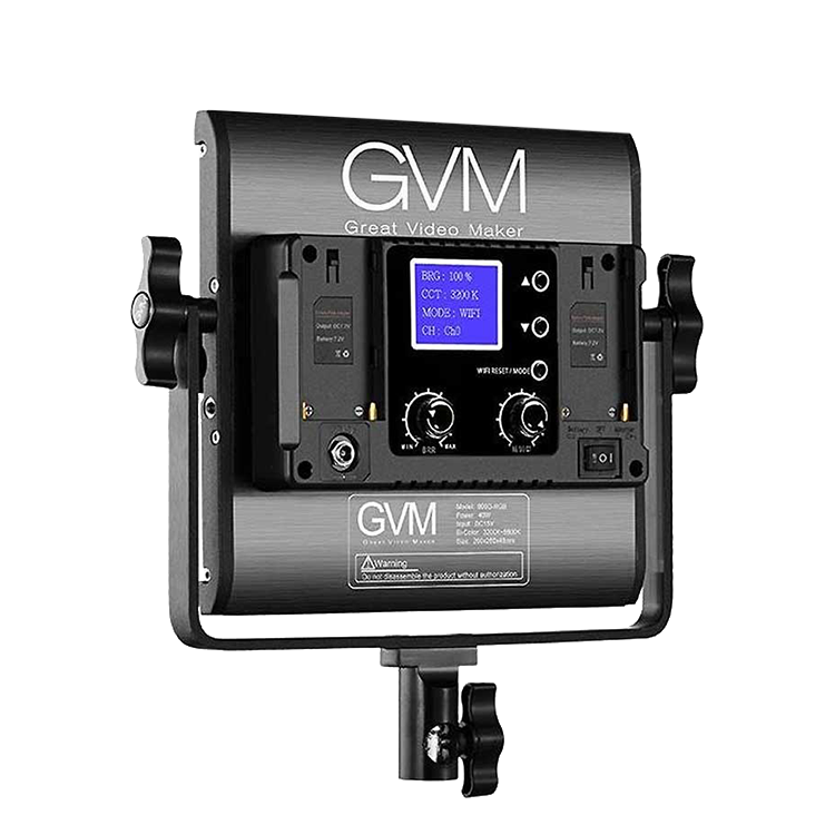 Корпус GVM 800D-RGB выполнен из высокопрочного алюминиевого сплава, который не боится высоких температур и способен выдерживать повышенные нагрузки. В комплект входит адаптер для бесперебойной и стабильной работы лампы. Устройство можно использовать как в качестве основного, так и дополнительного осветителя. Имеется кейс для переноски и хранения
