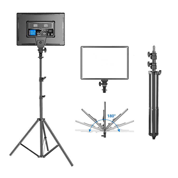 ![]() | Надежные материалы изготовленияКонструкция из алюминиевого сплава делает осветители невероятно прочными и надежными даже для самой сложной работы. Положение световой панели можно регулировать в пределах 180°. Крепкие фиксаторы для блокировки обеспечат сохранность и общую устойчивость панели. Максимальная высота стойки составляет 200 см. При необходимости ее можно отрегулировать и установить в наиболее удобное положение |