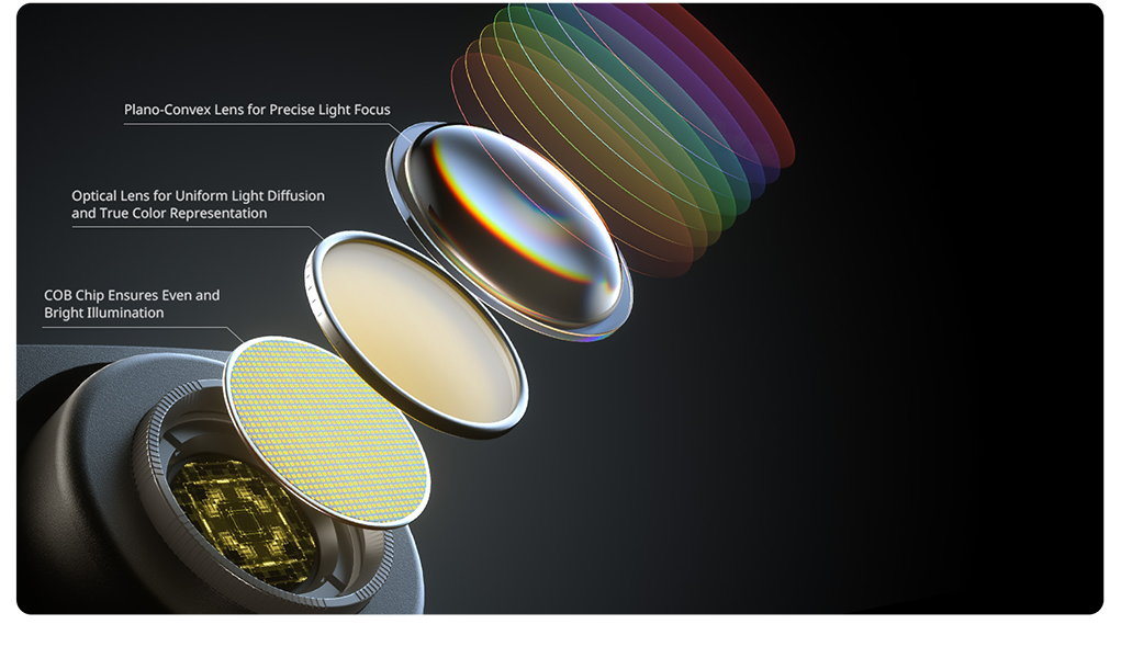Прецизионная оптика и управлениеОптическая система прибора сочетает высокую яркость с энергоэффективностью: кастомизированные линзы снижают энергопотребление на 10% при сохранении светового потока предыдущего поколения. Технология Three Times Optics обеспечивает равномерное распределение света и индекс цветопередачи CRI ≥95+. Новая COB-матрица минимизирует отклонение цветовой температуры (DUV ±0.0015), сохраняя точность оттенков во всем диапазоне 2700–6500 К. Управлять параметрами можно четырьмя способами: вручную на корпусе, через приложение SmallGoGo по Bluetooth, с помощью контрольной панели или по протоколу DMX |