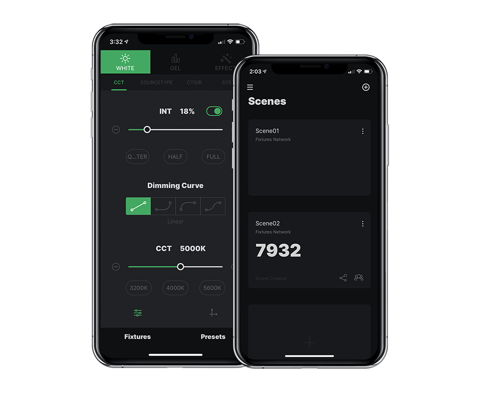 ![]() | Комфортное управлениеРаботу осветителя можно регулировать как колесом интенсивности, так и колесом управления ССТ, необходимым для точной настройки CCT с шагом +/- 50K. В свою очередь кнопка "PRESET" позволит в быстром доступе переключаться между 5 общими пресетами CCT (2700K, 3200K, 4300K, 5500K, 6500K). На корпусе осветителя присутствует дисплей, с помощью которого и осуществляется контроль основных показателей устройства. Управлять моделью можно также и с помощью проверенного и надежного 2.4G RF Remote от Aputure, DMX512 и через приложение Sidus Link непосредственно с вашего смартфона |