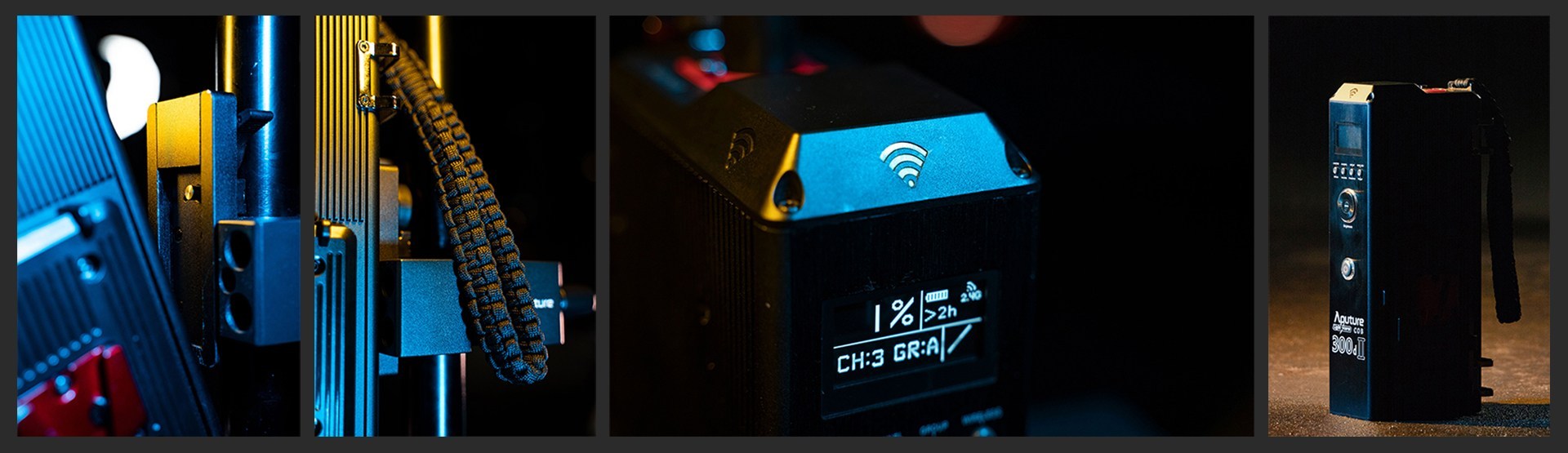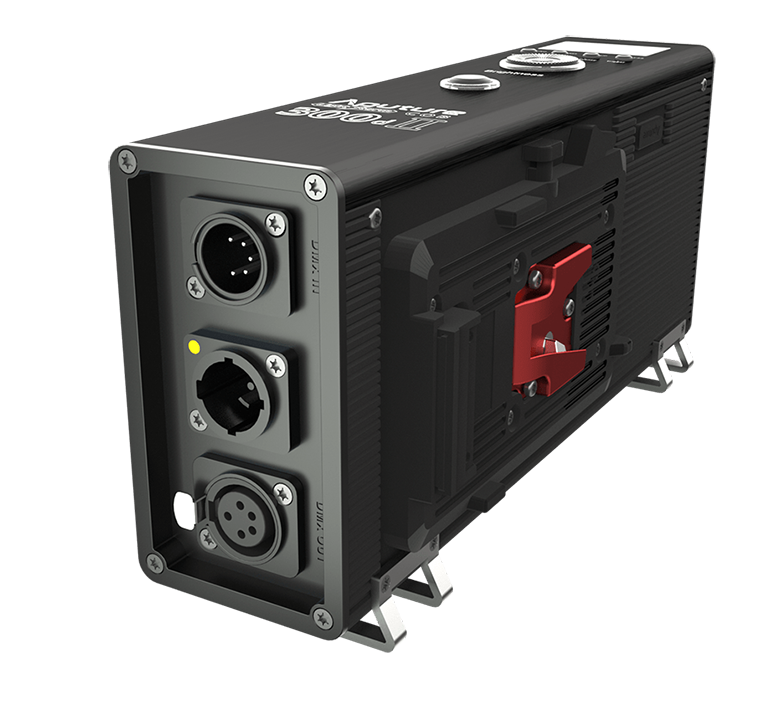 Внешний блок питанияПомимо уже описанных изменений, полное переосмысление получил и блок питания и управления, что значительно снижает вес моноблока, и делает работу со светом гораздо удобнее. При помощи специального крепления, блок можно установить на стойке, и уже туда поставить массивными аккумуляторы V-mount. На торце расположены органы управления, а также дисплей, с помощью которого вы можете регулировать настройки и следить за уровнем батареи | ![]() |