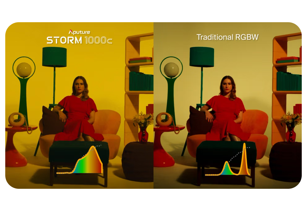 ![]() | BLAIR-CG: новый уровень цветаОсветитель Aputure STORM 1000c открывает новый уровень цветопередачи благодаря инновационному BLAIR-CG. Этот революционный LED-осветитель охватывает до 90% цветового пространства Rec.2020, обеспечивая невероятную насыщенность и точность оттенков, включая ранее недостижимый яркий желтый. Специально откалиброванный индиговый излучатель усиливает свечение материалов, создавая белый свет, который идеально соответствует естественному дневному свету и лампам накаливания. Благодаря индексу цветопередачи CRI 97+ и высоким показателям SSI, этот прибор гарантирует непревзойденное качество освещения |