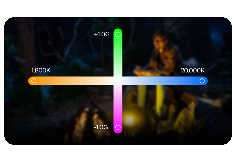 Точная настройка цветовой температурыДиапазон цветовой температуры STORM 1000c удивит даже самых требовательных профессионалов: от теплого свечения свечи до холодного сияния арктического льда. Прибор также позволяет полностью контролировать баланс зелёного оттенка (+/-100%), обеспечивая гибкость для любых условий съёмки. Эти возможности делают осветитель идеальным выбором для профессионального кино- и фотоосвещения | ![]() |