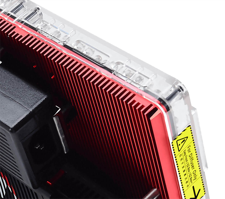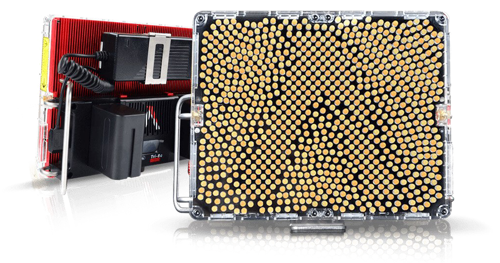| Tri-8s обладает поистине впечатляющими характеристиками. В 11,5 дюймовой панели уместилось целых 888 ярких качественных светодиодов, обеспечивающий высокий индекс цветопередачи CRI95+. Большая плотность диодов позволило устройству выдавать 24000lux на 0,5м, что равнозначно свету в 600В! |