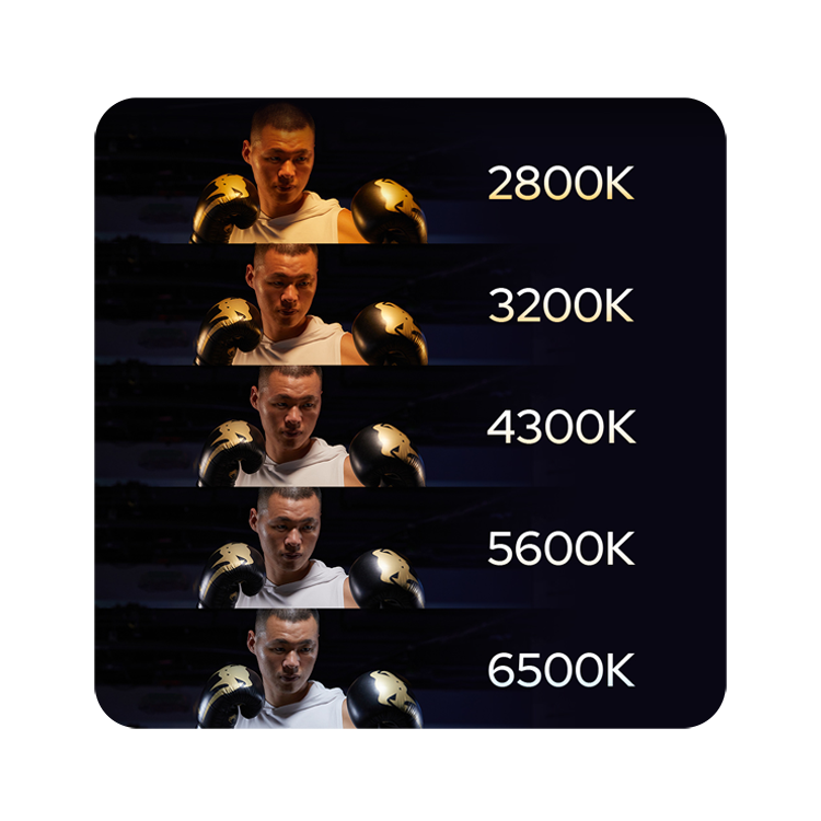 Отрегулируйте силу яркости освещения от 0% до 100% с шагом 1%. Это позволит подобрать подходящее освещение для любой сцены. Дополнительно были предустановлены пять часто используемых цветовых температур, доступных по одному нажатию