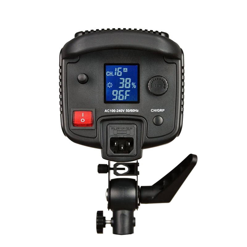 | Беспроводной пульт управленияУправление осветителем также осуществляется с помощью пульта, отображающего показатели ЖК-дисплея. Особенно удобная опция при установке моноблока под потолком или на максимальной высоте студийной стойки |