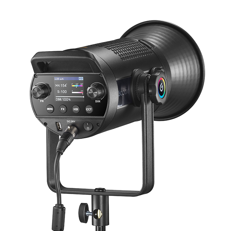 Студийный моноблок мощностью 150 Вт способен залить сцену качественным светом любого оттенка, благодаря встроенному RGB режиму. Модель позволяет изменять угол луча в пределах 20° - 65°, а значит вы получите исключительные возможности освещения, которые поднимут вашу творческую работу на новый уровень