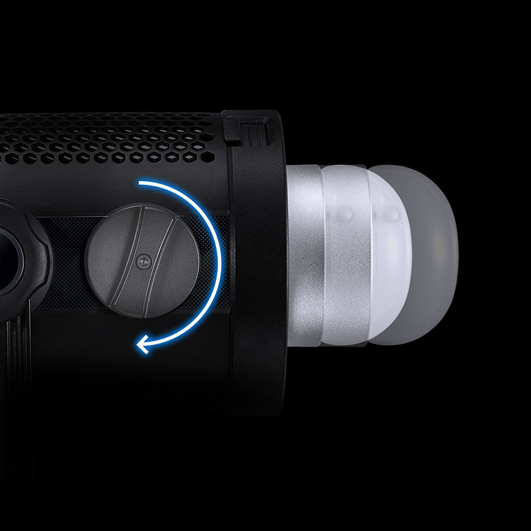 Оптическая конструкция оснащена ручкой регулировки, которая позволяет легко изменять угол рассеяния луча от 20° до 65° для получения светового пятна нужного размера. Благодаря высокому показателю CRI/TLCI устройство обеспечивает естественные оттенки кожи, а также совместимо с другими различными светообразующими аксессуарами Bowens