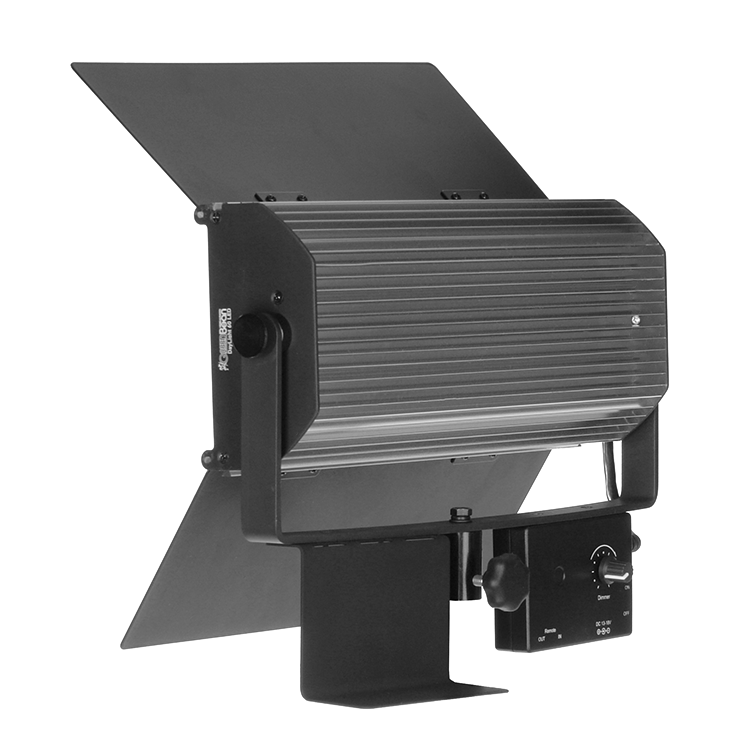 Задняя алюминиевая стенка осветителя представляет собой охлаждающий радиатор. Благодаря этому он не нуждается в шумном вентиляторе и способен работать бесшумно, что очень удобно для кинопроизводства