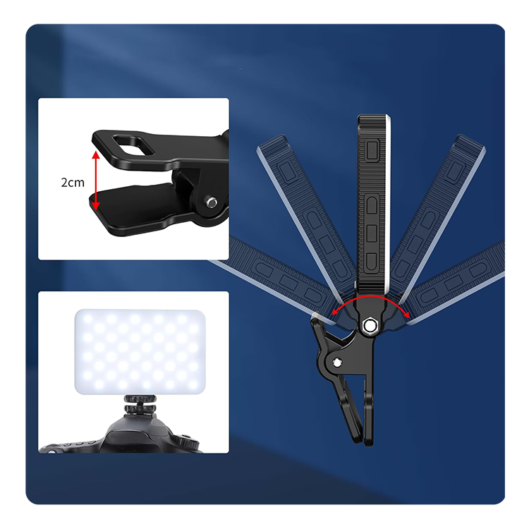 Автоматизация и креплениеОсветитель KingMa KM-80AI оснащен интеллектуальным датчиком освещенности, автоматически регулирующим яркость под условия съемки (активируется удержанием кнопки M). Модель разработана для селфи и видеоблога. Благодаря прищепке в комплекте её можно прицепить на смартфон, планшет или ноутбук и подсветить себя или объект съёмки. А благодаря штативным креплениям на корпусе панель может быть установлена на треногу или кронштейн |