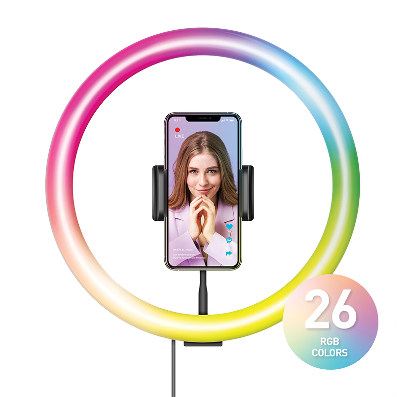Гибкость настройкиСветодиодное кольцо поддерживает 9 уровней яркости белого света и 3 режима цветовой температуры, среди которых: теплый 2700 - 3500 К, нейтральный 3500 - 4500 К и холодный 5500 - 7000 К. При включении функции RGB вам будет доступно 8 уровней яркости и 26 потрясающих цветов | ![]() |