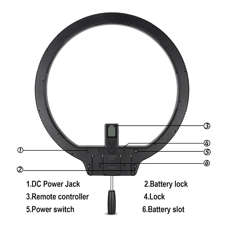 Кольцевая лампа незаменима при предметной и портретной съёмке, поскольку способна обеспечить полное заполнение светом и отсутствие теней, а на отражающих поверхностях и глазах может появиться специфический блик. Модель имеет 608 ярких светодиодов и фиксированную цветовую температуру 5500 К, что идентично яркому дневному свету