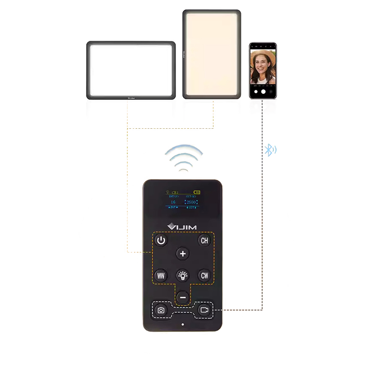 Приятной особенностью модели стало наличие многофункционального пульта. Он имеет встроенный дисплей и множество вариантов настройки света. Предусмотрена даже отдельная кнопка для старта записи или фото на смартфоне