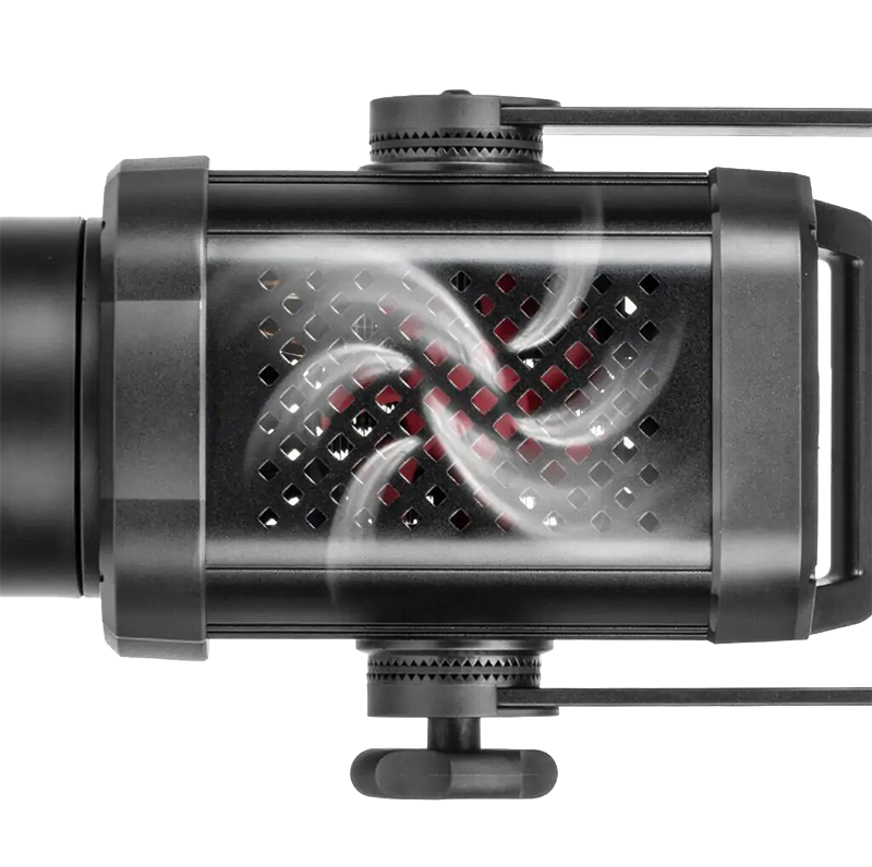 Weeylite Ninja оснащен встроенным вентилятором, охлаждающим устройство во время его работы. Силы воздушного потока достаточно, чтобы значительно продлить не только длительность съемки, но и срок службы самого оборудования. Даже при максимальной мощности вентилятора уровень шума остается достаточно низким