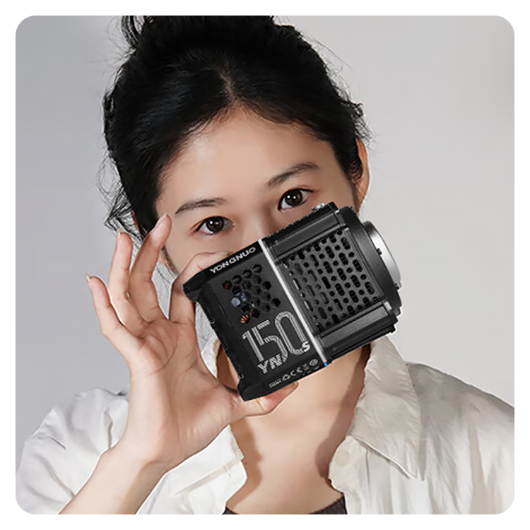 Миниатюрный моноблок весом 0.5кг содержит в себе 150 Вт света, способного решить множество задач для съёмки. Его просто взять с собой в поездку, поставить в домашней студии или использовать на природе. Он оснащен байонетом mini Bowens, а YongNuo уже позаботились о различных насадках для большей функциональности