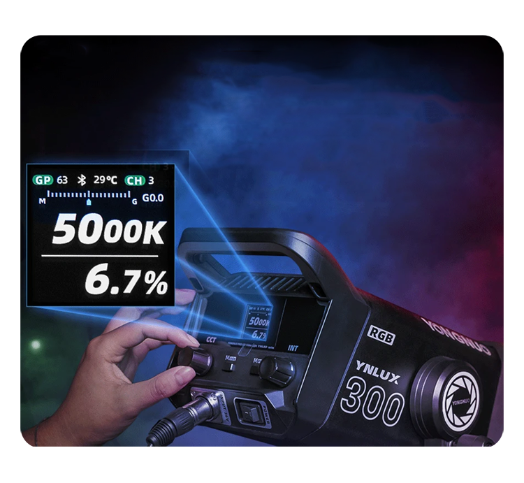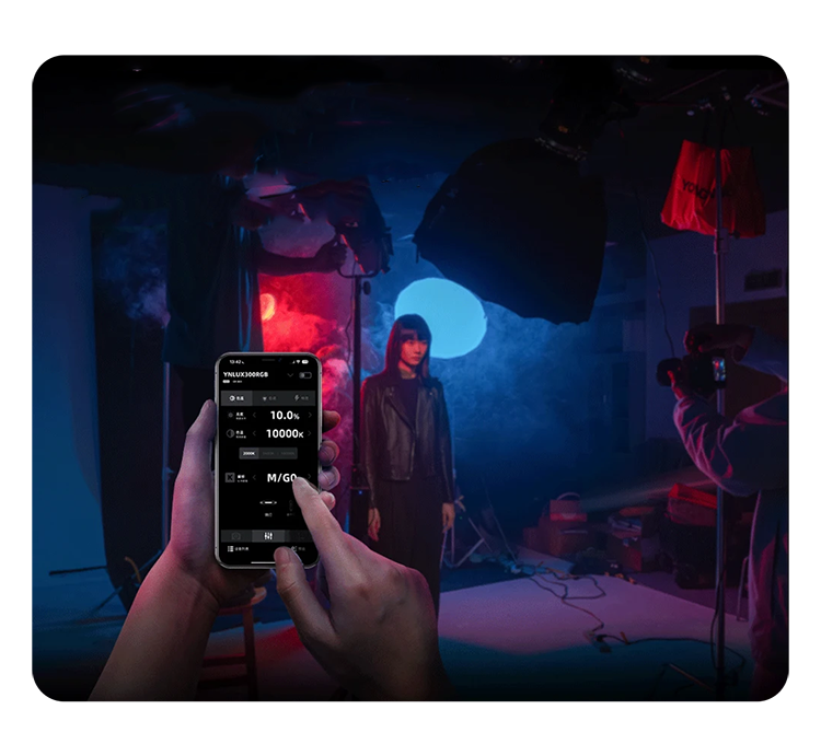 Творчество без границБлагодаря байонету Bowens осветитель способен работать со всевозможными насадками, настраивая световой поток как нужно. Управлять YNLUX300 можно при помощи меню на задней панели, либо на расстоянии, подключив его к приложению на вашем смартфоне | ![]() |
