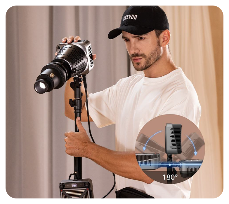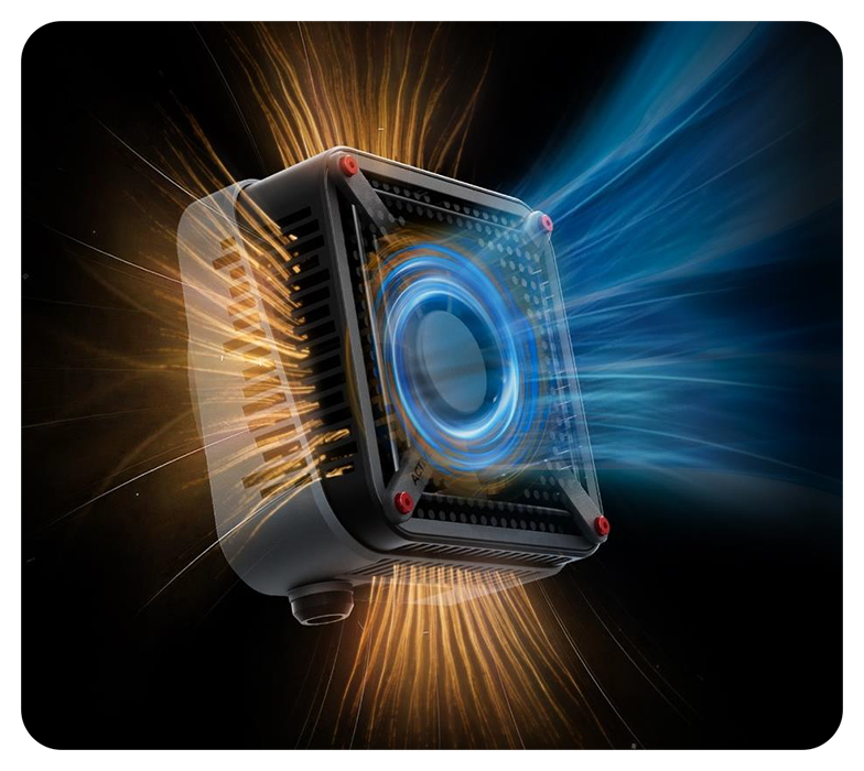 ![]() | Особая система охлажденияНовая система охлаждения для СОВ-света G200 и контроллера организована на сочетаниизапатентованной системы охлаждения ZHIYUN DynaVort Cooling System™, вентилятора FOC ирадиатора, в результате источник света Molus G200 обеспечивает свет профессионального качества иподходит для съемки в студии или на съемочной площадке |