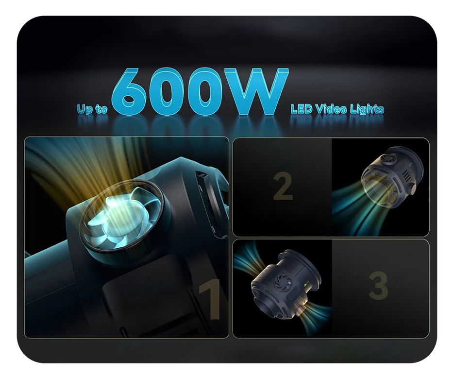 Тройное охлаждениеНовый запатентованный теплоотводящий вентилятор обеспечивает активное охлаждение, а радиаторы и теплоотводящие отверстия усиливают охлаждение устройства как такового и продлевают срок службы осветительных приборов | ![]() |