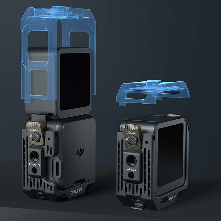 Клетка для DJI Osmo Action 2 значительно расширяющая функциональность камеры, а также обеспечивающая безопасность устройства. Конструкция имеет собственный зарядный порт Type-C, а также магнитный адаптер для специальных светофильтров Tilta |