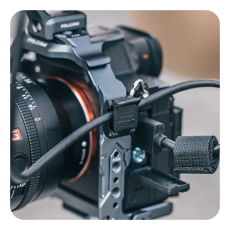 ![]() | Дополнительные аксессуары и удобство использованияКлетка оснащена портативной ручкой F22 из лёгкого и износостойкого материала Micarta, которая обеспечивает надёжный хват и быстрое крепление через интерфейс F22. Универсальный кабельный зажим с регулируемым положением и диапазоном зажима от 2,5 до 6 мм защищает провода от повреждений и обеспечивает стабильную передачу данных. Конструкция клетки не блокирует доступ к кнопкам, батарейному отсеку и экрану, что делает её идеальным решением для профессиональной съёмки |