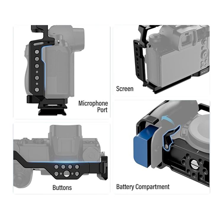 Специально разработанная для камеры Nikon Z5/Z6/Z7/Z6II/Z7II, клетка для обладает высокой совместимостью. Она изготовлена из высококачественного алюминиевого сплава с использованием технологии резки с ЧПУ, а ее поверхность подвергается окислительной обработке для обеспечения долговечности