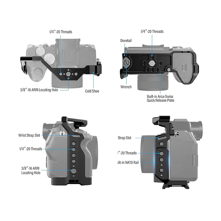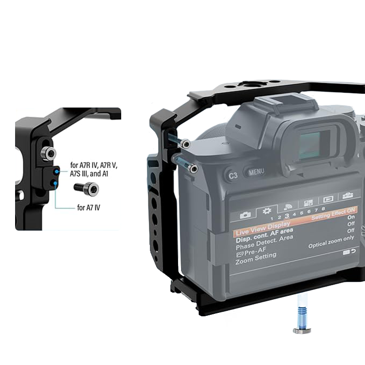 Клетка для камеры Sony A7R V, A7 IV, A7S III, A1, A7R IV позволяет расширить функционал устройства, а также обеспечить дополнительную защиту. Прочный и лёгкий корпус из алюминия убережет дорогостоящее устройство во время активной эксплуатации |