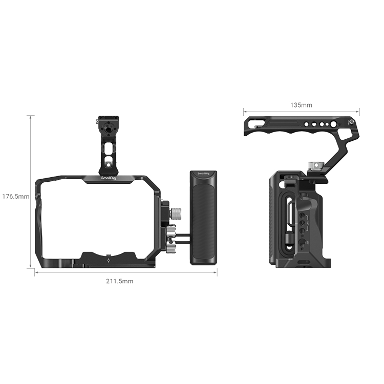 Профессиональный комплект для беззеркальной камеры Sony a7 IV/a7 S III состоящий из клетки, боковых фиксирующих пластин, зажима для HDMI, боковой и верхней ручки и крепежных аксессуаров. Он обеспечит защиту и позволит получить дополнительные крепления для установки требуемого оборудования