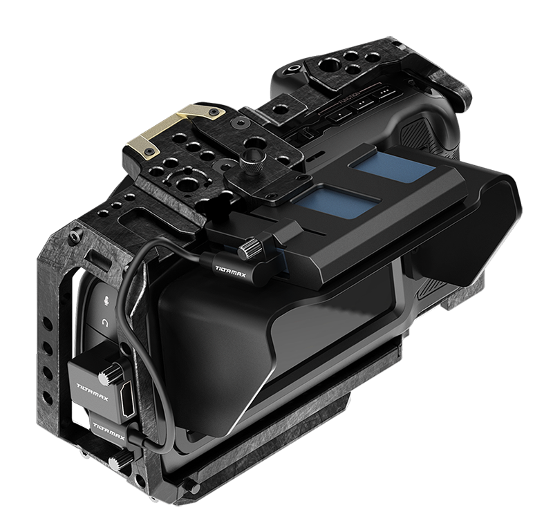 В данном комплекте добавлен держатель для SSD накопителя Samsung T5, для увеличения объёма памяти и быстросъёмная верхняя ручка, что делает съёмку более удобной, особенно при нижнем ракурсе. На рукоятке предусмотрены крепления типа башмак, что позволяет установить накамерный свет или микрофон | ![]() |