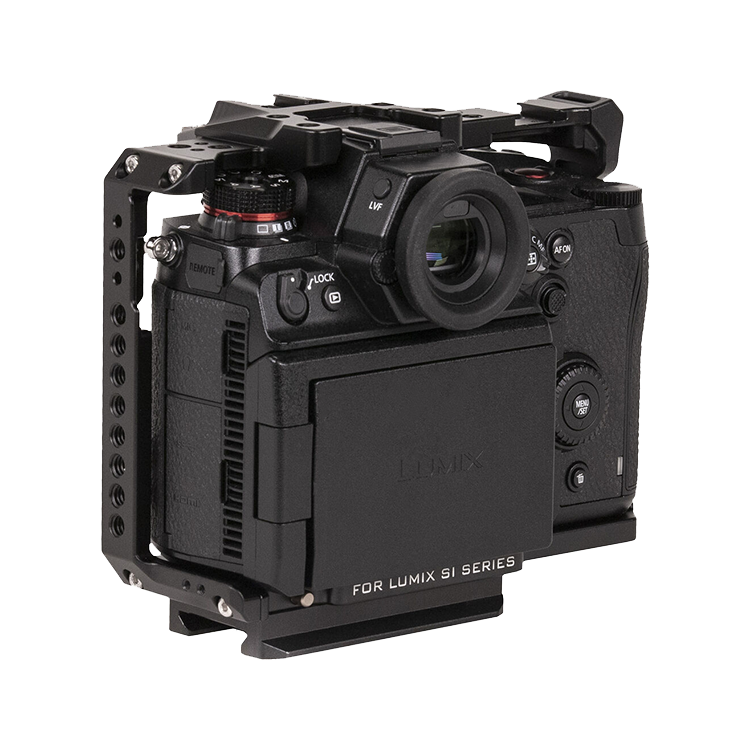 Клетка для камер серии Panasonic S. Защищает камеру от возможных повреждений, а также позволяет установить дополнительное оснащение за счёт большого количества креплений