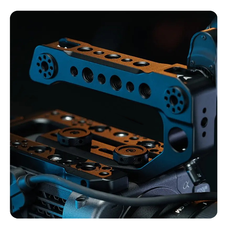 Система риг для Sony FX6 предлагает многофункциональную платформу для крепления дополнительных аксессуаров, обеспечивая надёжную защиту камеры. В комплект входит верхняя площадка, которая идеально сочетается с оригинальной ручкой Sony FX6, а также позволяет устанавливать дополнительные аксессуары, такие как регулируемая верхняя рукоятка и кронштейн для монитора. Верхняя пластина оборудована двумя адаптерами для 15-мм направляющих, что упрощает установку аксессуаров над объективом |