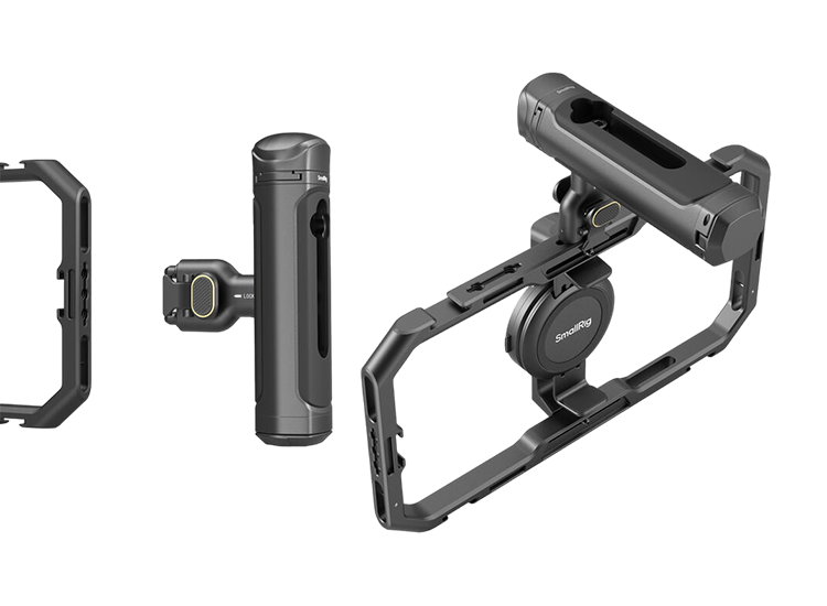 Клетка для мобильной съемкиКлетка оснащена универсальной системой быстрого крепления и боковой рукояткой с беспроводным управлением на частоте 2.4 ГГц, обеспечивающим радиус действия до 10 метров. Конструкция оснащена несколькими резьбовыми отверстиями 1/4" и холодным башмаком для установки дополнительных аксессуаров. Магнитное крепление позволяет дополнительно установить 67-мм фильтры |