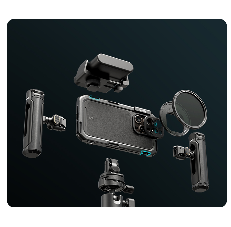 Комплект из чехла с байонетом и клетки способен обеспечить профессиональный уровень видеосъемки. Главная особенность конструкции - быстрое крепление. Вам не нужно откручивать фиксирующие винты. Для установки смартфона достаточно положить гаджет в клетку и опустить фиксатор. Соберите свой идеальный риг для наиболее эффективной съёмки!