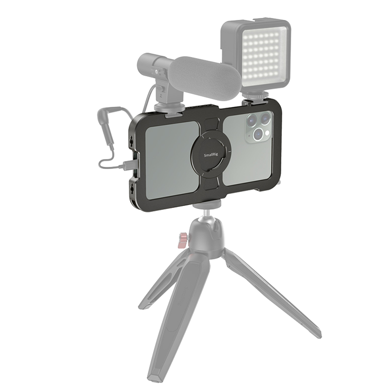 Если вы хотите максимально повысить качество фотографий и видео, сделанных на смартфон, то вам понадобятся специальные аксессуары, которые крепятся к клетке для гаджета. Клетка SmallRig Pro Mobile Cage предназначена для iPhone 11 Pro Max. Она имеет многочисленные резьбовые отверстия 1/4” и 2 холодных башмака. Оснастите смартфон микрофоном, светом, треногой и другими необходимыми аксессуарами, чтобы сделать замечательные кадры для вашего блога