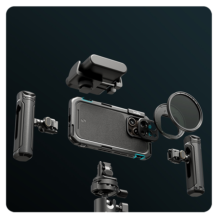 Модульная платформа для аксессуаровНа корпусе клетки расположены 4 холодных башмака, 3 резьбовых отверстия 1/4" с защитой от проворота и отверстия для плечевого ремня (до 2 мм). Это позволяет крепить микрофон, осветитель или рукоятки, превращая iPhone в многофункциональную киностудию. Совместимость с классическими быстросъемными интерфейсами SmallRig обеспечивает интеграцию с экосистемой бренда — от стабилизаторов до дополнительных кронштейнов | ![]() |