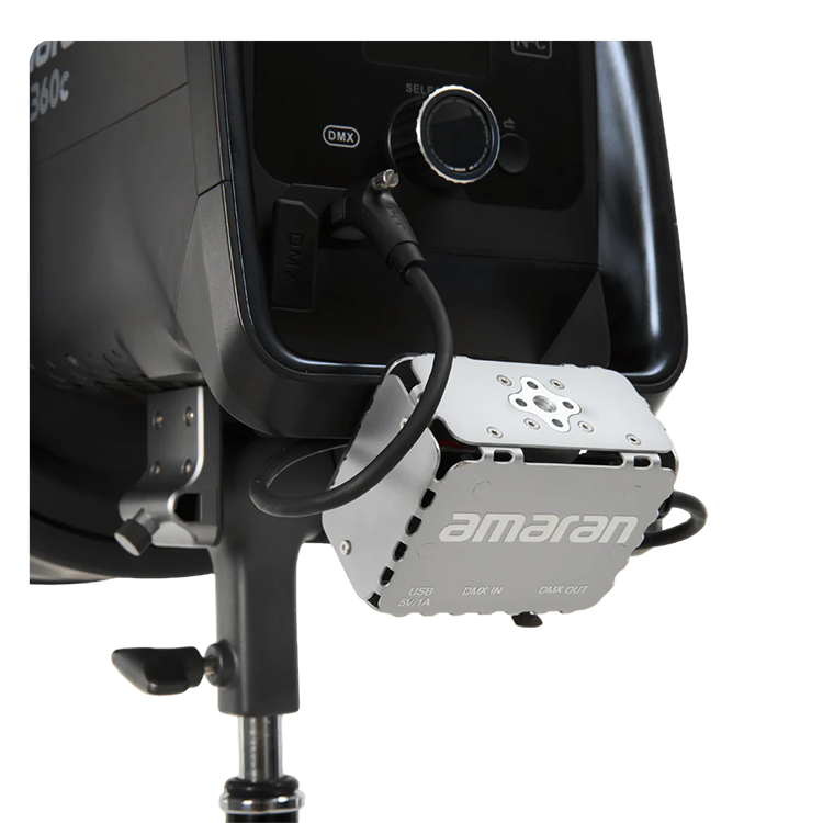 Надежное соединение и гибкий монтажType C кабель с винтовым креплением гарантирует надежное крепление даже в условиях активного движения на съемочной площадке. Для обновления встроенного программного обеспечения предусмотрен порт USB с выходной мощностью 5 Ватт, позволяющий загружать новые прошивки непосредственно с накопителя. Компактный металлический корпус обеспечивает долговечность в студийных условиях, а крепление осуществляется либо с помощью комплектной липучки к рукоятке осветителя, либо через резьбовое отверстие 1/4" для установки на стойку | ![]() |