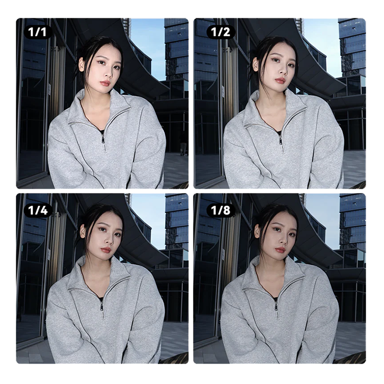 Световой поток с цветовой температурой 6500K и ведущим числом 8 позволяет получать естественное освещение, делая портретные снимки более выразительными. Четыре уровня яркости дают возможность адаптировать свет под различные сцены, а система высокоскоростного отклика обеспечивает мгновенную перезарядку на 1/8 мощности, что делает возможной съемку сериями без задержек