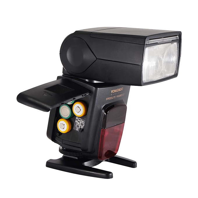 Панель управления оснащена большим дисплеем, на котором вы можете следить за рабочими параметрами, а также контролировать заряд аккумулятора. В конструкции головки предусмотрены убираемые рассеиватели. Питается YN-568EX от четырех алкалиновых или Ni-MH аккумуляторов типа АА. При использовании последних, время перезарядки сокращается до 2 секунд на полной мощности. На торце вы найдете порт micro USB для обновления прошивки