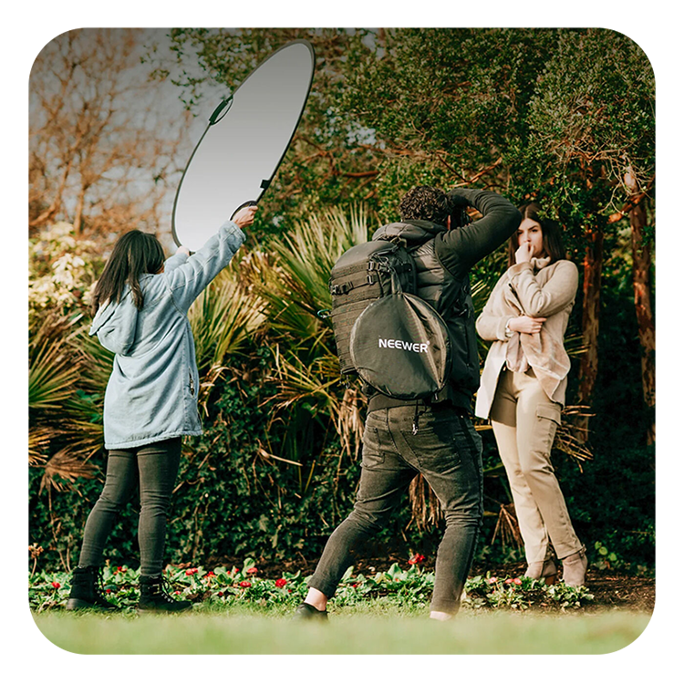 Новая модель складного круглого отражателя с боковыми ручками для создания нужного освещения или фона в кадре. Благодаря складной конструкции его легко хранить и перевозить