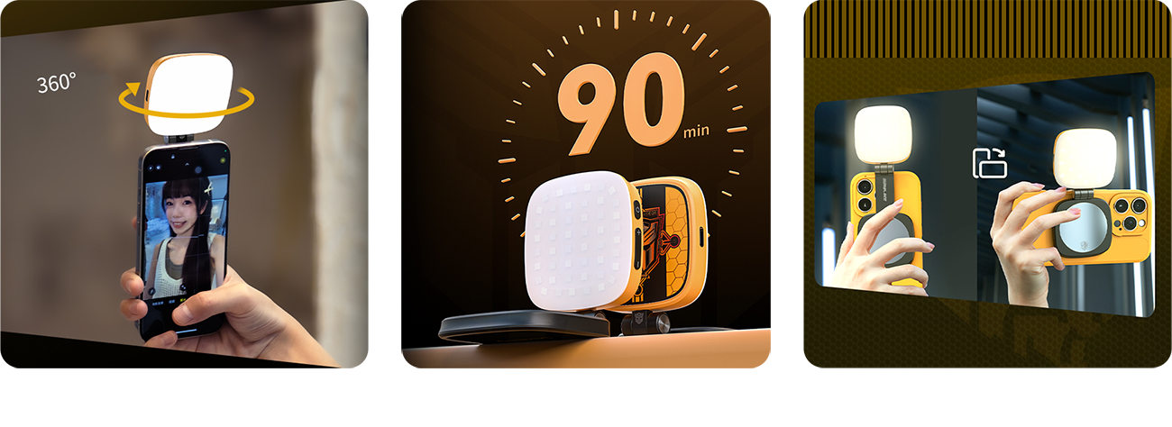 Компактный осветитель для мобильной съемкиКомпактный осветитель, обеспечивающий мягкое и равномерное освещение в диапазоне от теплого 2700K до холодного дневного 5600K, идеально передавая цвета благодаря высокому индексу передачи цвета. Магнитная система крепления обеспечивает мгновенную установку на смартфоны с поддержкой MagSafe, а для других устройств в комплекте предусмотрено металлическое кольцо-стикер |