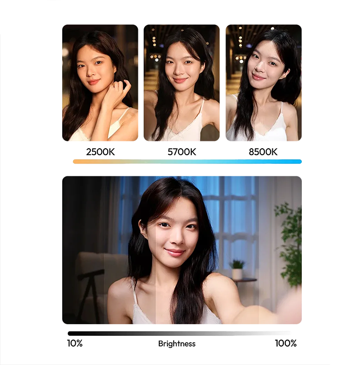 ![]() | Профессиональный контроль света и цветаВторое поколение популярного осветителя для селфи и блога! В конструкцию было добавлено зеркальце, чтобы вы смогли следить за своей внешностью, а также подставка, с помощью которой можно поставить смартфон на стол. Оттенок света можно регулировать от холодных 2500K до теплых 8500K, а высокие показатели цветопередачи гарантируют качественные оттенки в кадре. Бесступенчатая регулировка позволяет точно настраивать параметры для создания естественного освещения |