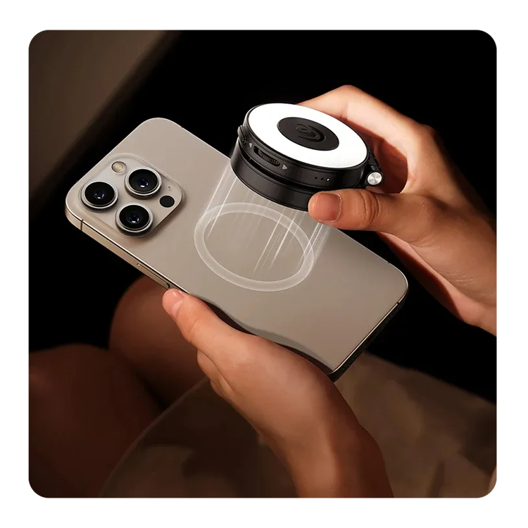 Универсальность и эргономикаМагнитная система крепления обеспечивает поворот на 360°, а конструкция имеет наклон на 180° для точного позиционирования. Вес устройства всего 90 грамм, а компактные габариты в сложенном положении позволяют положить LM23 Gen 2 в сумочку или карман. Заркепить его можно на смартфон или чехол с магнитом MagSafe, а также он совместим с держателями экосистемы MagLock от Ulanzi | ![]() |