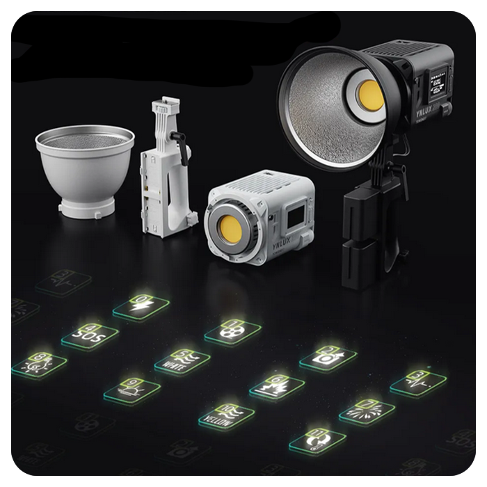 Еще мощнееЕще более мощная и современная версия ультракомпактного моноблока серии LUX от YongNuo обзавелась усовершенствованной матрицей диодов, что позволило увеличить мощность до 200 Вт, а также получить улучшенную цветопередачу для профессиональной работы. Осветитель имеет байонет Bowens, а также несколько встроенных FX режимов для создания видео эффектов |