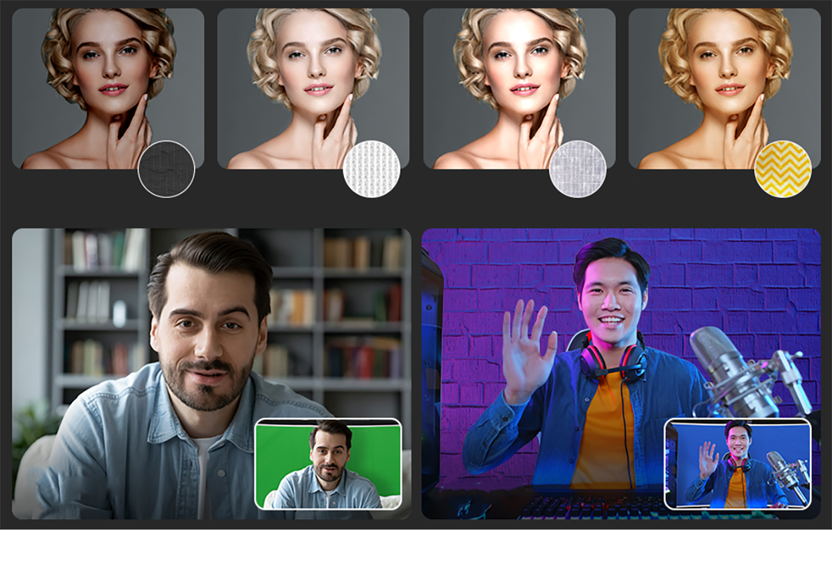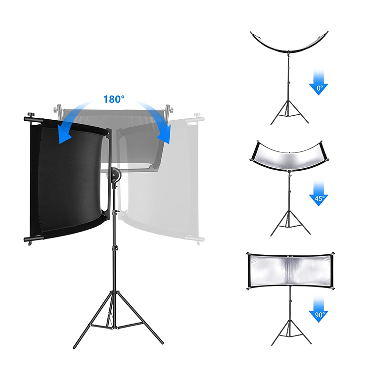 4 дополнительных цветаВ комплект входят две двусторонние сменные поверхности: золото/белый, синий и зеленый, которые добавляют цветовые эффекты и позволяют использовать фон для хромакея, а благодаря липучкам смена полотна выполняется быстро и легко |