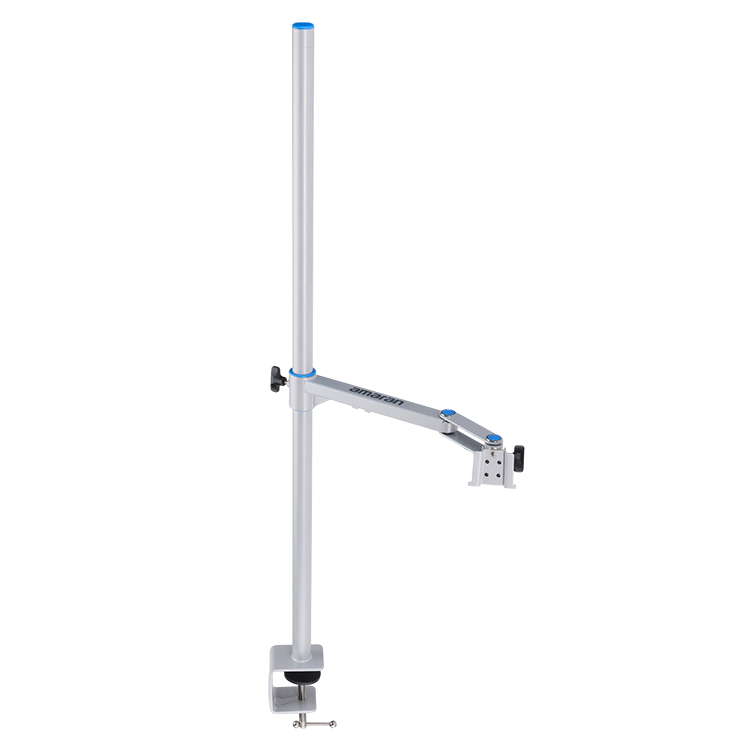 Настольная стойка для осветителя amaran Verge и Verge Max имеет специальное быстросъёмное крепление Verge Lock, благодаря чему монтаж этой LED панели станет максимально простым без дополнительных инструментов. Конструкция из алюминия обеспечивает прочность при весе в 2.55 кг, а зажим надежно фиксируется на столешницах толщиной от 2 см до 7 см. Стойка позволяет плавно регулировать высоту осветителя в диапазоне до 1 метра. Угол освещения можно точно настроить с помощью поворотного рычага на 360 градусов и механизма наклона с диапазоном 180 градусов